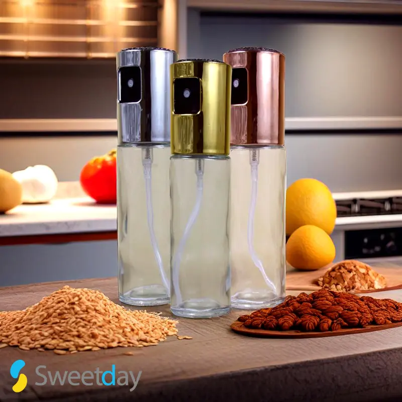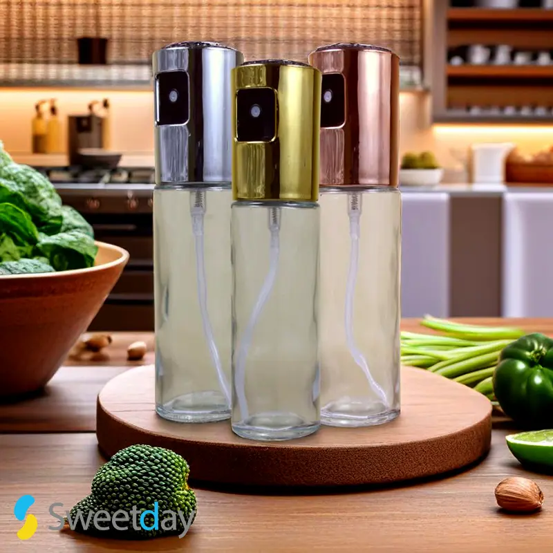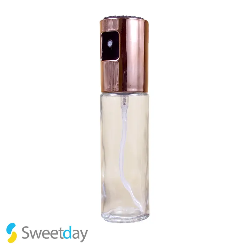 اسپری روغن ۱۰۰ میل یک ابزار کاربردی و دقیق برای آشپزی سالم و کنترل شده است. بدنهی این اسپری از شیشه شفاف و مقاوم ساخته شده تا میزان روغن داخل مخزن همیشه قابل مشاهده باشد و مصرف راحتتر کنترل شود. درپوش اسپری از پلاستیک مقاوم است و در سه رنگ طلایی، نقرهای و مسی عرضه میشود تا بهخوبی با سایر وسایل آشپزخانه ست شود.