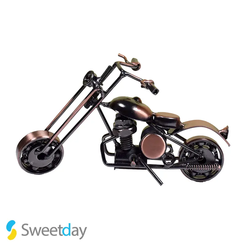موتورسیکلت دکوری کوچک فلزی یک دکوری خاص و متفاوت برای افرادی است که به طراحیهای صنعتی و هنری علاقه دارند. این محصول بهصورت کاملاً دستساز تولید شده و در ساخت آن از پیچ و مهره، زنجیر، فنر، ساچمه فلزی و ورق فلز آهنی استفاده شده است. ترکیب این قطعات فلزی، ظاهری واقعی و الهام گرفته از موتورهای کلاسیک و مدرن ایجاد کرده و آن را به یک دکوری موتور چشمنواز تبدیل کرده است.